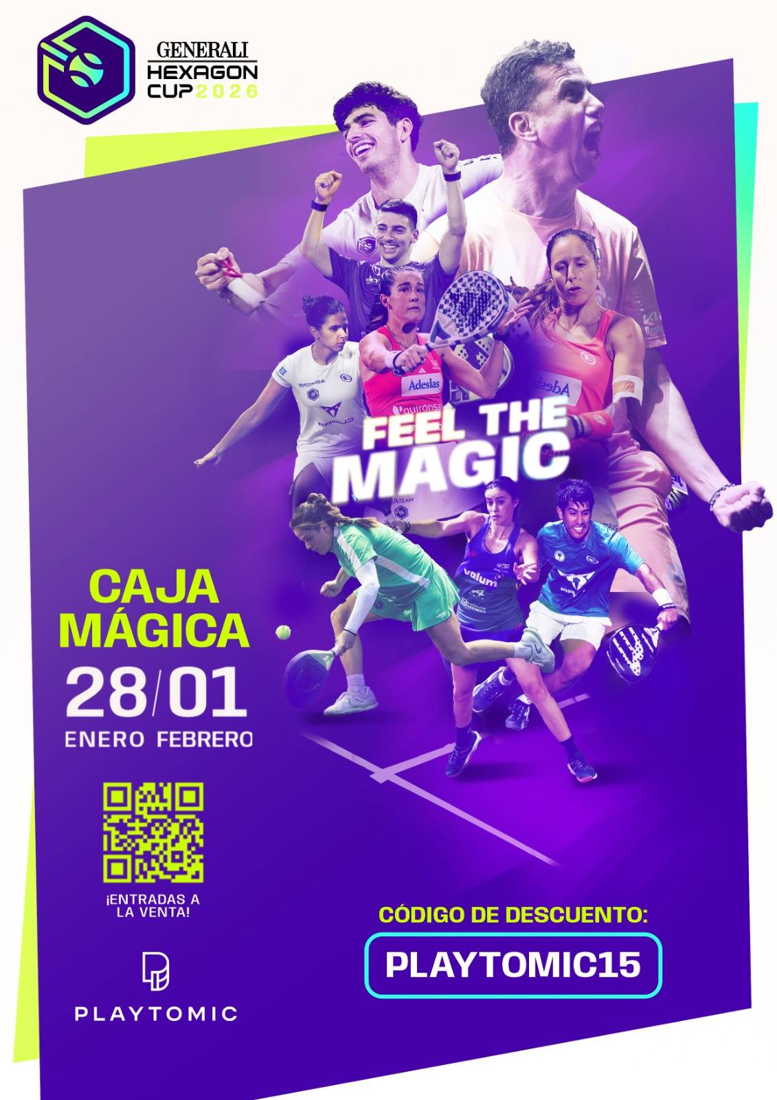 ¿Estás listo para el torneo de pádel más emocionante del año? 🌟 La Generali Hexagon Cup 2026 llega al La Caja Mágica de Madrid del 28 de enero al 1 de febrero, y queremos que vivas esta experiencia única con nosotros.